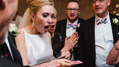 Harry totally blew us away at our wedding! His magic brought so much joy and laughter to our special day.